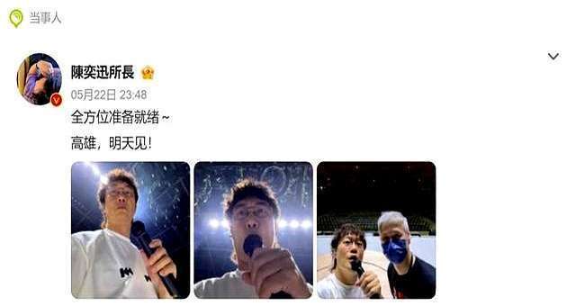 5月22昼夜深,陈奕迅在搪塞媒体上po了一组怼脸自拍,配文“全标的准备就绪~高雄,来日见!”像片里,他衣裳浅陋的白T恤,拿着麦克风,看起来精神状态如实可以。粉丝们也纷纷留言,什么“规复得可以”、“一切凯旋”、“已满血回生”之类的,一派自得。